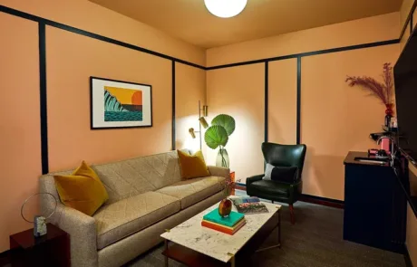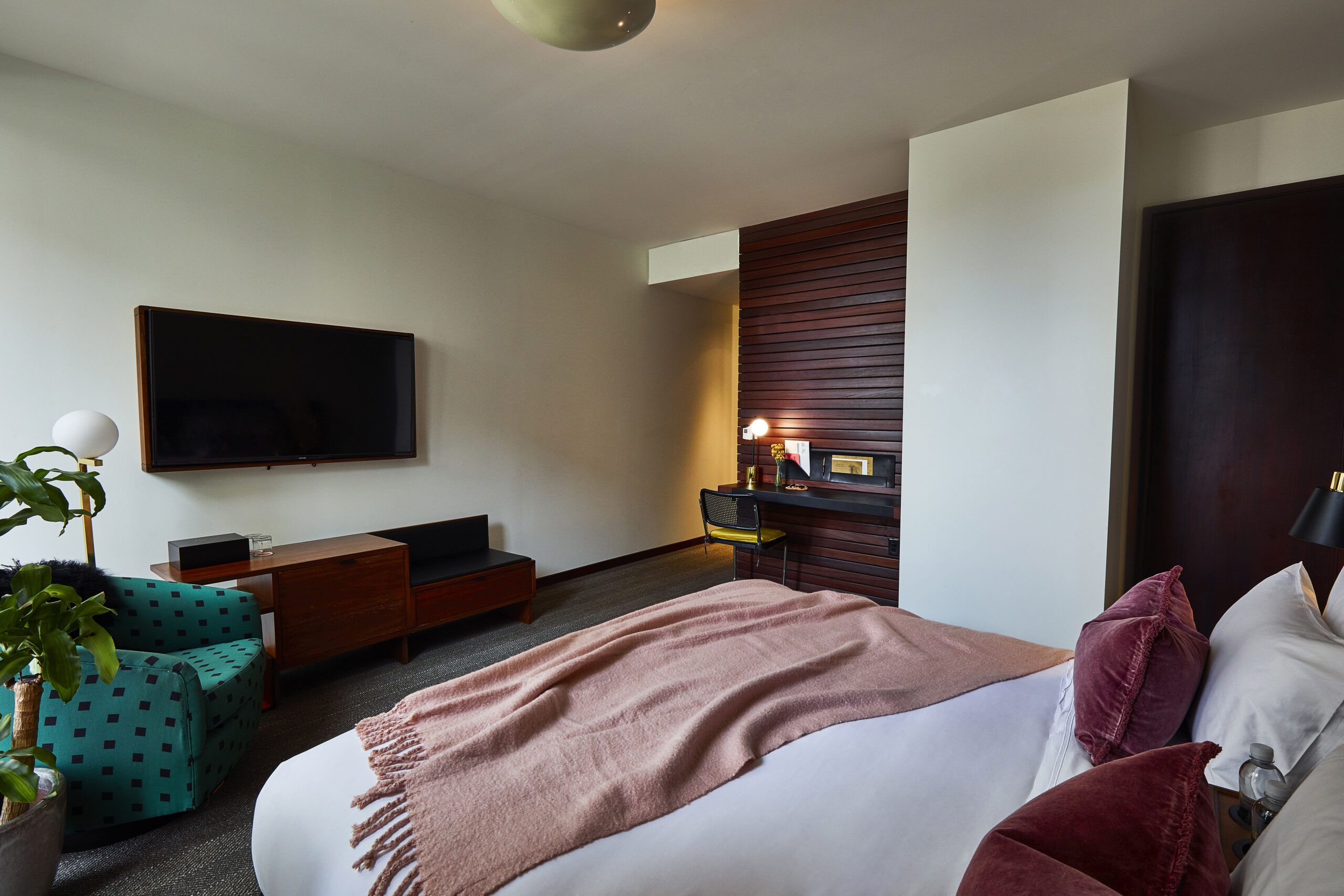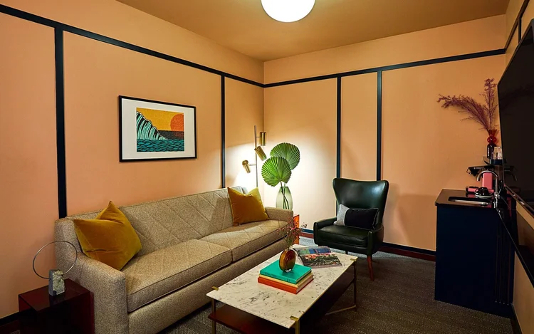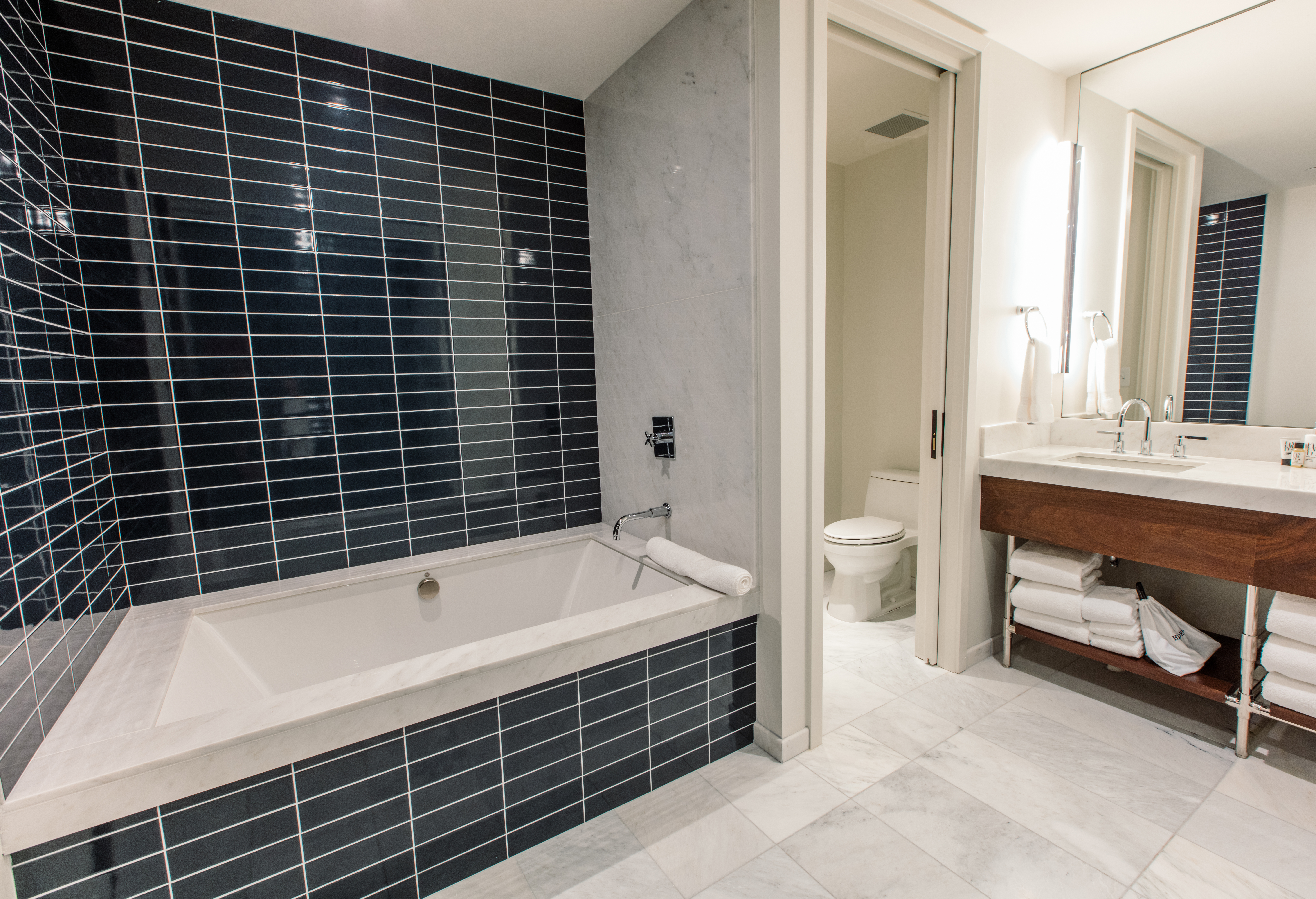 Enjoy a taste of the good life. Dive into the Euro-top king bed while taking in the Nashville views through floor-to-ceiling windows. This spacious Cherry Suite includes a queen sleeper sofa, two 55″ TVs, plenty of plug-ins and charging stations, luxe bath amenities, a soaker tub and marble shower, and a minibar stocked with locally-sourced treats to help make your stay that much sweeter.