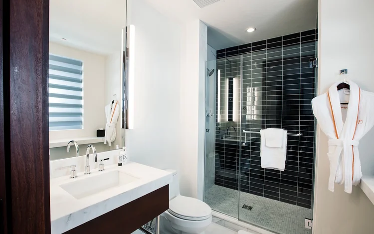 Featuring a Euro-top queen bed, marble peek-a-boo showers, luxurious bathrobes and a minibar with locally-curated snacks, our Standard Queen rooms offer 266 square feet of modern-luxury decor. Stay connected with multiple bedside charging options, 55″ TV, and lightning-quick Wi-Fi… on the house, of course.