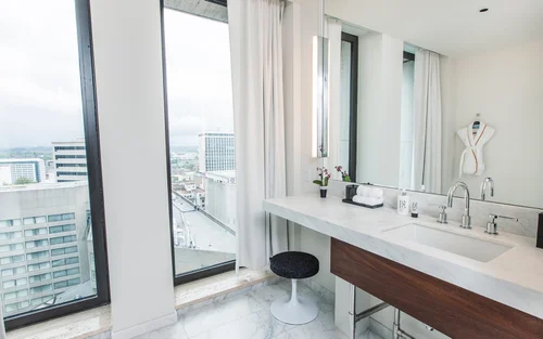 It’s called the Boss Suite for a reason. After a day of owning the town, dive onto the Euro-top king bed in your plush robe with a highball in hand. Sprawl out in your spacious suite overlooking downtown Nashville with floor-to-ceiling windows or flip on your 55″ TV. A queen sleeper sofa, plenty of charging stations, luxe linens and bath amenities, and a fully-stocked locally-sourced minibar further elevate your stay.
